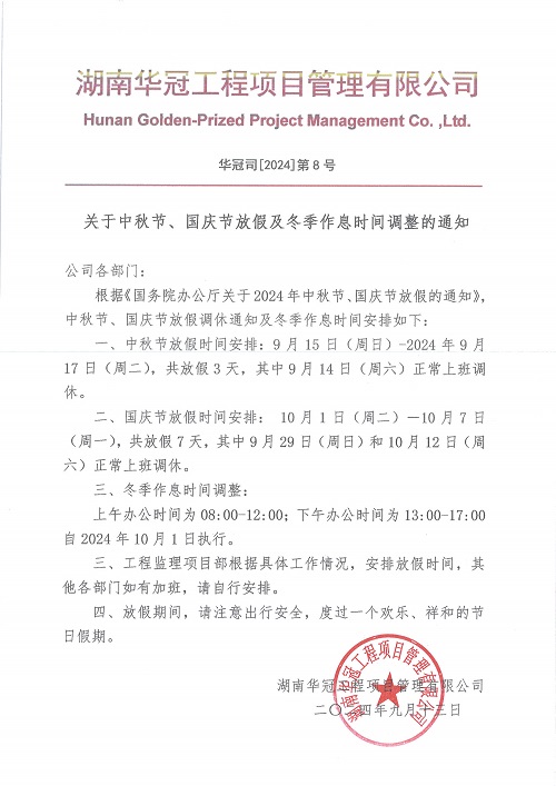 中秋節(jié)、國慶節(jié)放假及冬季作息時間調(diào)整的通知